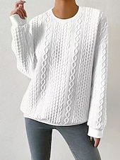 More information about Women's Texture Sweatshirt Pullover Plain Streetwear Casual Comfy Long Sleeve Crew Neck Regular Tops Street Holiday Going out White Fall