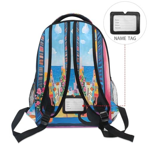 Black Cat Kitten Cityscape Backpack for School Boys Girls Adults Kids Bookbag Laptop Bag 18L 5
