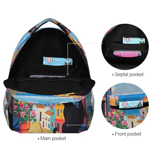 Black Cat Kitten Cityscape Backpack for School Boys Girls Adults Kids Bookbag Laptop Bag 18L 6