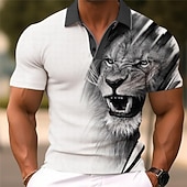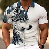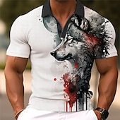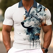 HOT ! Men's Wolf Golf Shirt Short Sleeve Polo Shirts Collared Shirts Funny Streetwear Vacation Wear Party Outfits Buttons 3D Print Summer Spring Black Red Navy Blue