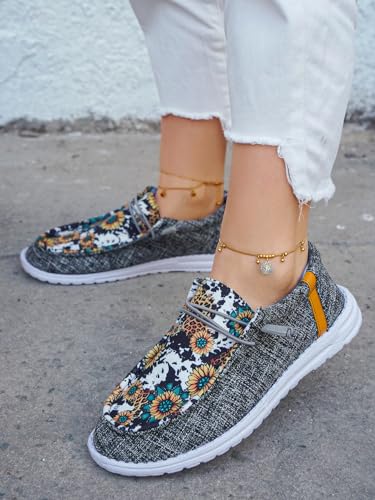 Unisex Casual Hey Loafers Canvas Sunflower Pattern Print Elastic Lace-up Comfortable & Light-Weight Slip-on Loafers Arch Support Walking Driving Basic Shoes for Women/Men/Adults/Teenagers,US Size 6-10 4