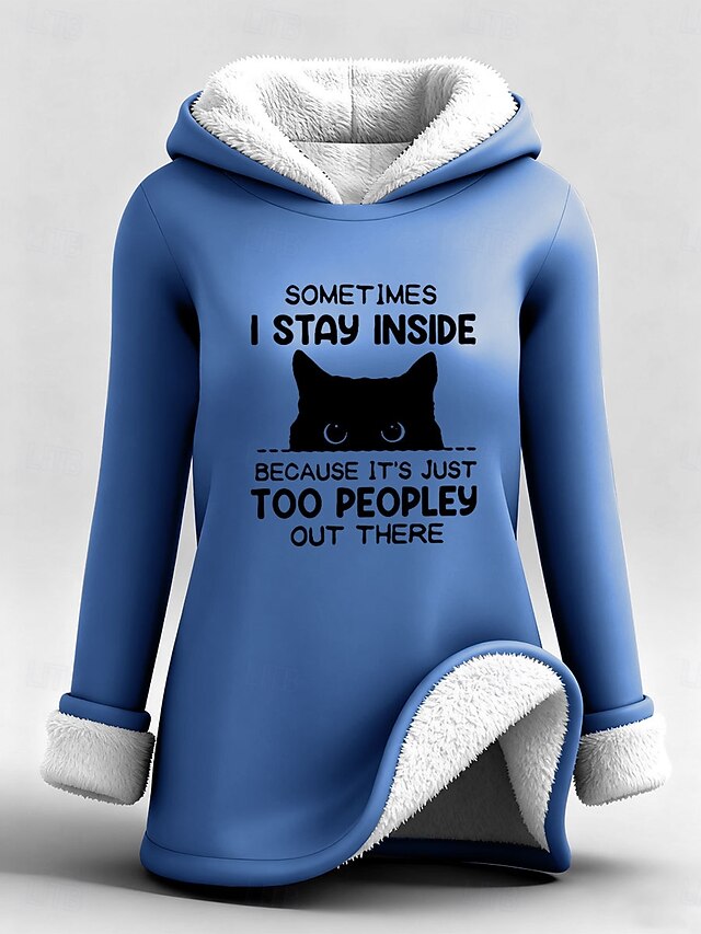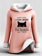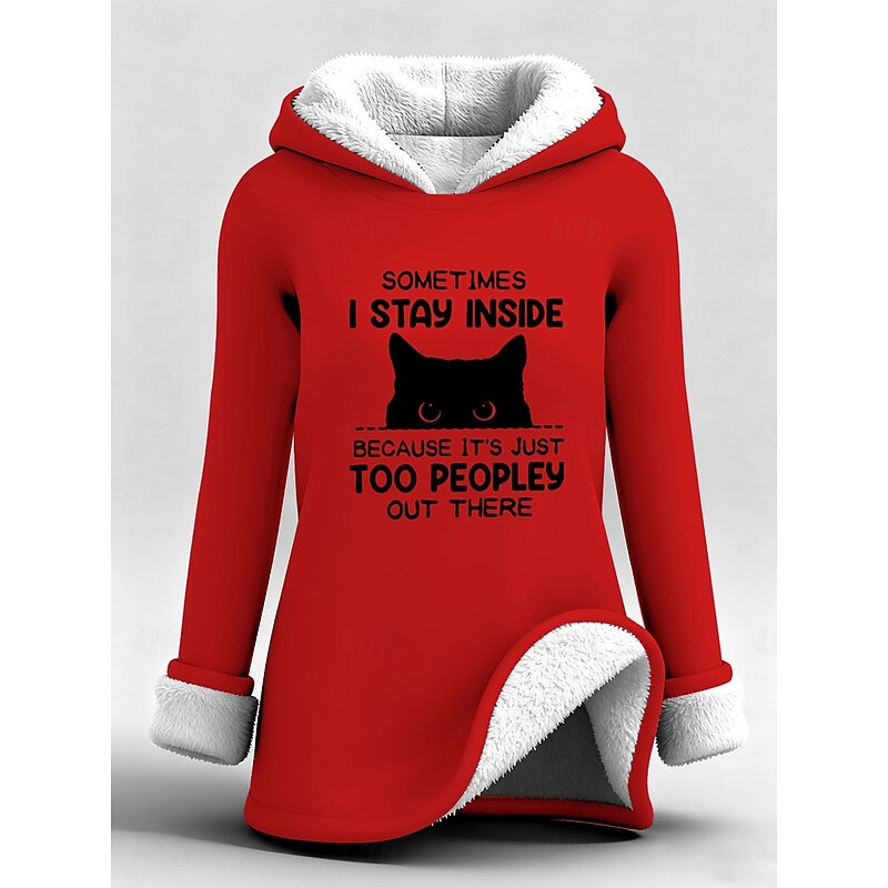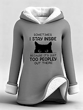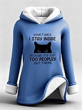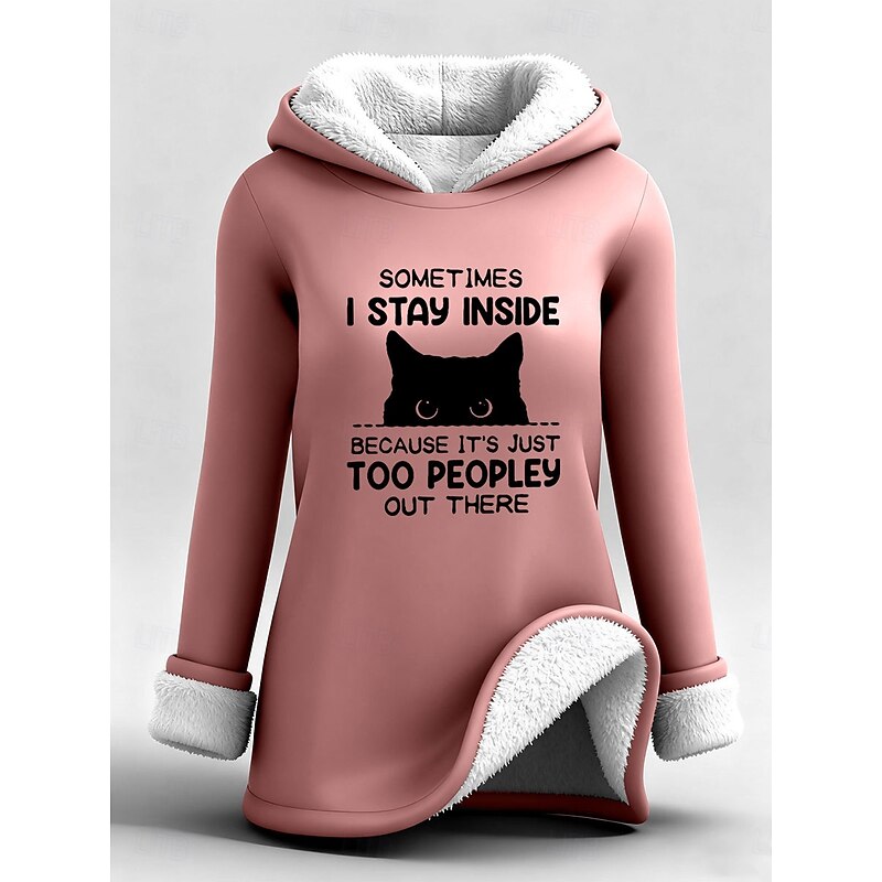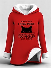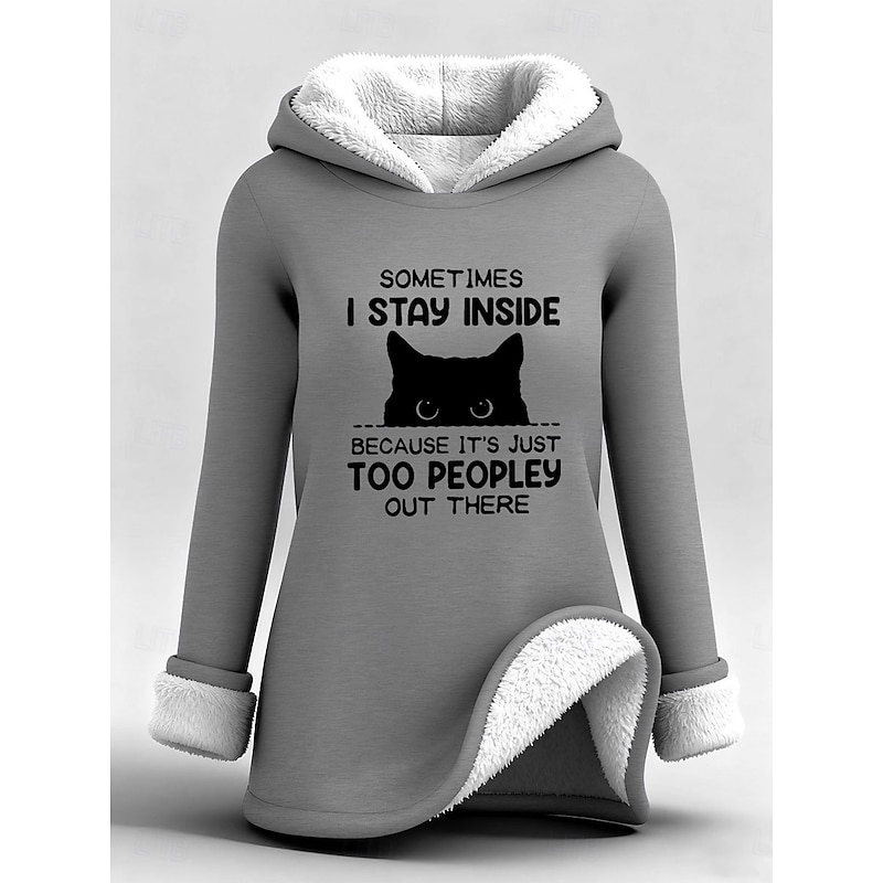 Highlights - Stay warm and cozy in this fleece-lined long top - Loose fit for ultimate comfort - Stylish letter print design - Perfect for staying comfy and fashionable.
