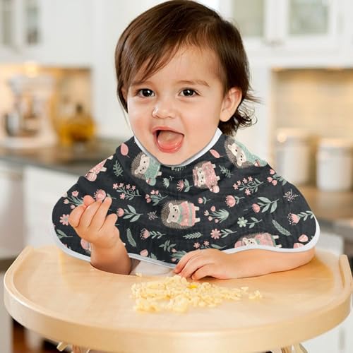 J JOYSAY Hedgehog Flowers Black Baby Burp Cloths for Boys Girls Large 22''x11'' Cotton 4 Layer Burping Cloths for Girl Babies one sizex4 4