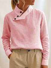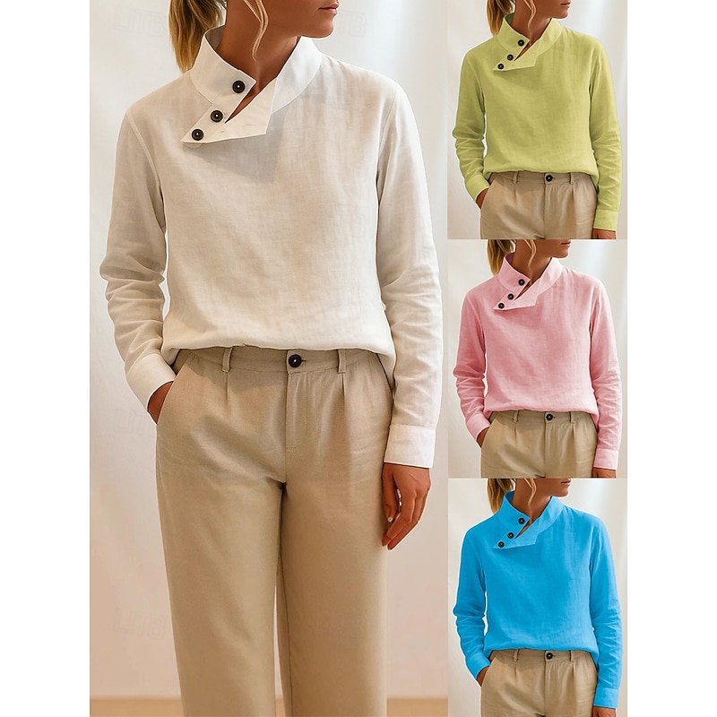 More information about Women's Blouse Solid Color Vintage Stylish Classic Long Sleeve High Neck Regular Tops Daily Buttons White Yellow Pink Blue Spring Fall Winter