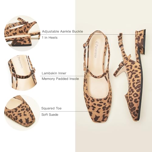 C.Paravano Women's Slingback Flats | Square Toe Slingback Flats for Women | Block Heel Sandals 2