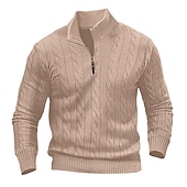Highlights [Fabric] : Expertly crafted from a premium polyester blend, this men's pullover sweater offers both durability and comfort. The stretchy fabric is designed to keep warmth in, making it an essential piece for fall and winter seasons. [Fit and Style] : Featuring a slim fit design, this sweater balances modern contemporary style with functionality. The classic ribbed and cable knit style enhances its timeless appeal, ensuring you stay fashionable while keeping warm. [Design Highlights] : The sweater boasts a quarter zip neckline that provides an easy-to-wear option and versatile styling possibilities. Ribbed cuffs and hems ensure a snug fit, maintaining the sweater's shape and adding to its sophisticated look. [Occasions] : Perfect for daily wear, casual outings, or weekend gatherings, this pullover sweater offers a sophisticated yet relaxed style. Whether you're at a casual gathering or simply enjoying a day out, it's an excellent choice for staying contemporary and cozy. [Size Range] : Available in a variety of sizes including S, M, L, XL, and 2XL, this sweater caters to a broad range of body types, ensuring an optimal fit for everyone seeking warmth and style in the cooler months. Perfect for everyday use. superior materials and excellent craftsmanship ensure long-lasting durability.