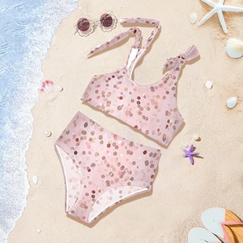 KLL Rose Gold Pink Glitter Girls 2 Piece Bikini Set Beach Swimsuits Swimming Suits Cute Shoulder Strap 2