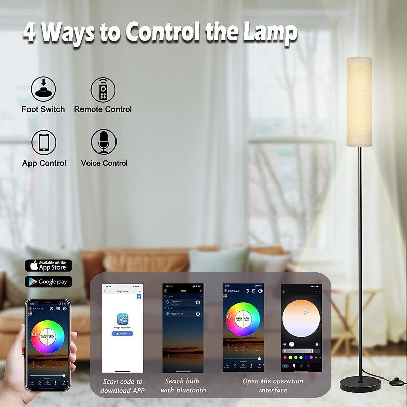 LED Floor Lamp for Living Room Bedroom Smart Standing Lamp with Alexa Google Assistant App Remote Control Tall Modern Floor Lamp with Linen Lamp Shade 16 Million Colors Bulb Included 4