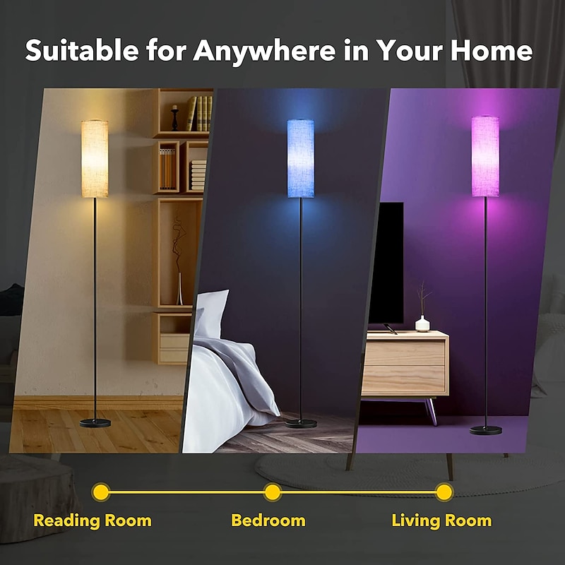 LED Floor Lamp for Living Room Bedroom Smart Standing Lamp with Alexa Google Assistant App Remote Control Tall Modern Floor Lamp with Linen Lamp Shade 16 Million Colors Bulb Included 11