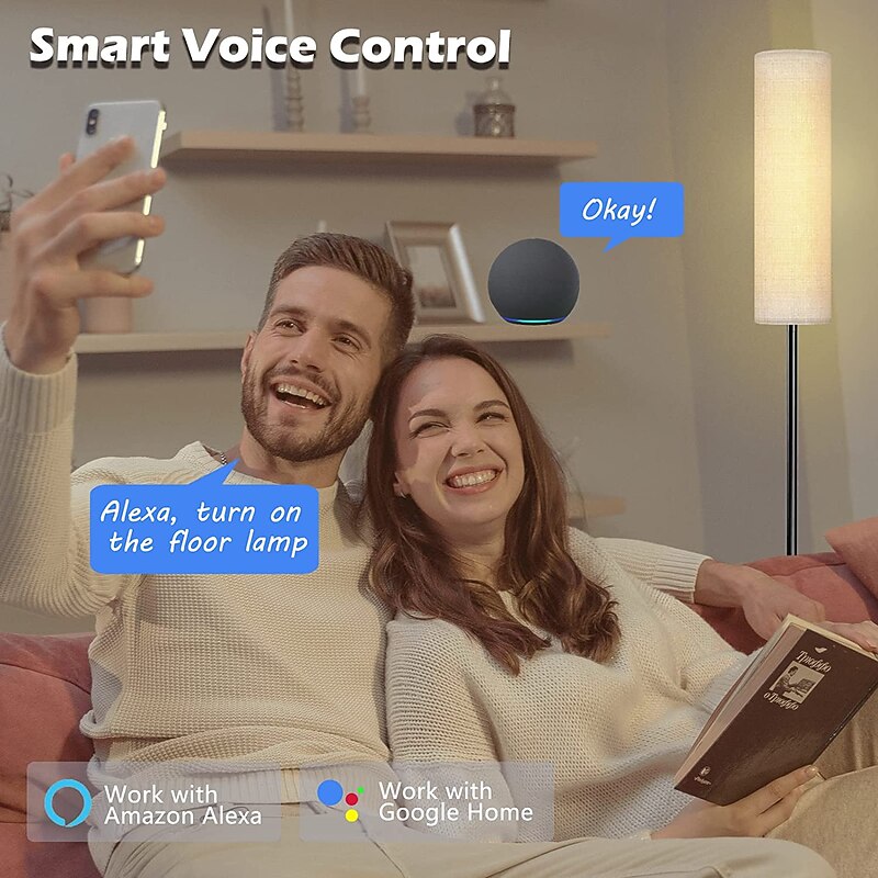 HOT ! LED Floor Lamp for Living Room Bedroom Smart Standing Lamp with Alexa Google Assistant App Remote Control Tall Modern Floor Lamp with Linen Lamp Shade 16 Million Colors Bulb Included