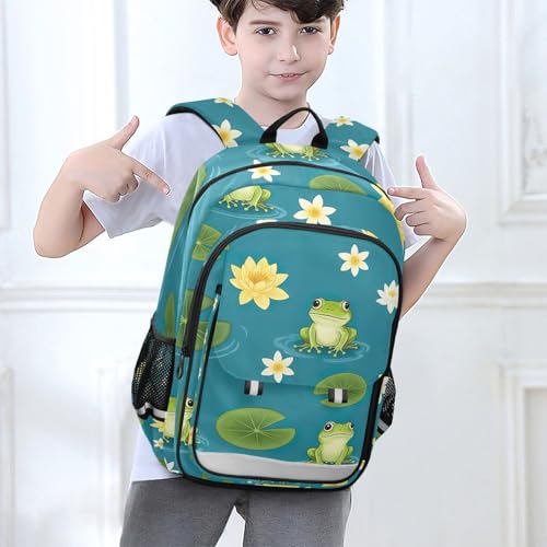 Cute Green Frogs Kids School Backpack for Boys Girls, 17 Inches, Backpack Elementary School, Backpacks for Travel, Age 6-12 5