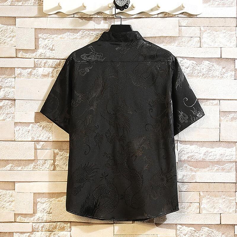 More information about Men's Shirt Chinese Collar Shirt Mandarin Collar Shirt Summer Shirt Casual Shirt Button Up Shirt Black White Red Gray Short Sleeve Plain Mandarin Collar Vacation Holiday Clothing Apparel Fashion
