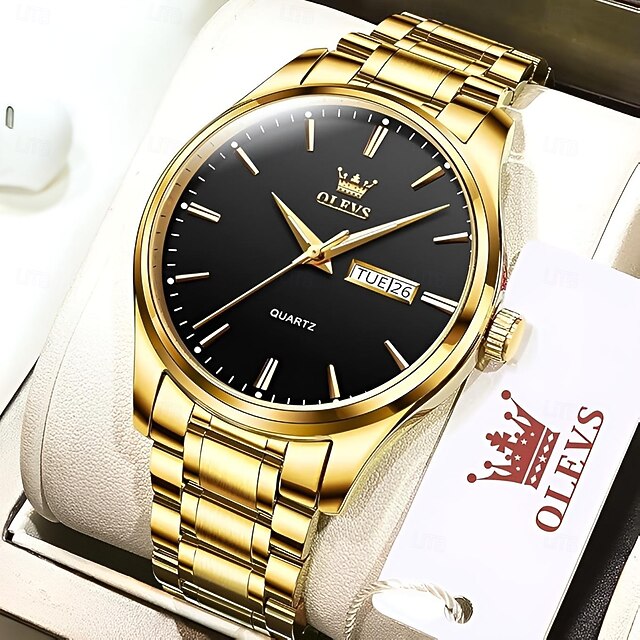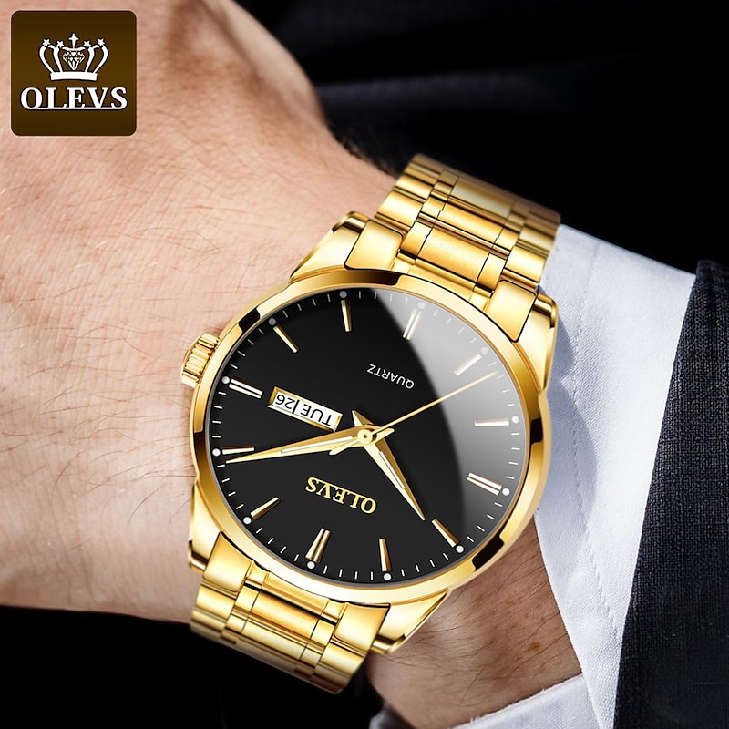 HOT ! OLEVS Men Quartz Watch Calendar Minimalist Luxury Large Dial Luminous Calendar Date Week Waterproof Stainless Steel Strap Watch