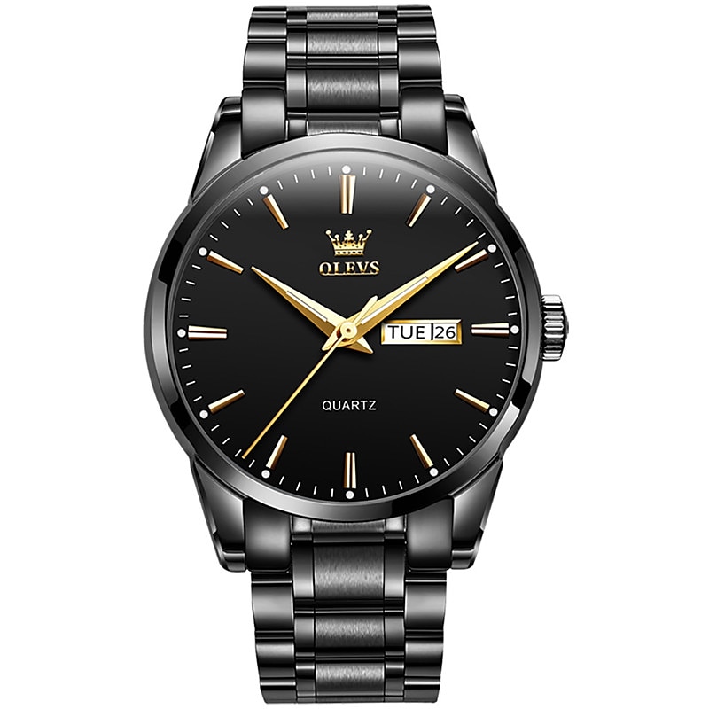 OLEVS Men Quartz Watch Calendar Minimalist Luxury Large Dial Luminous Calendar Date Week Waterproof Stainless Steel Strap Watch 12