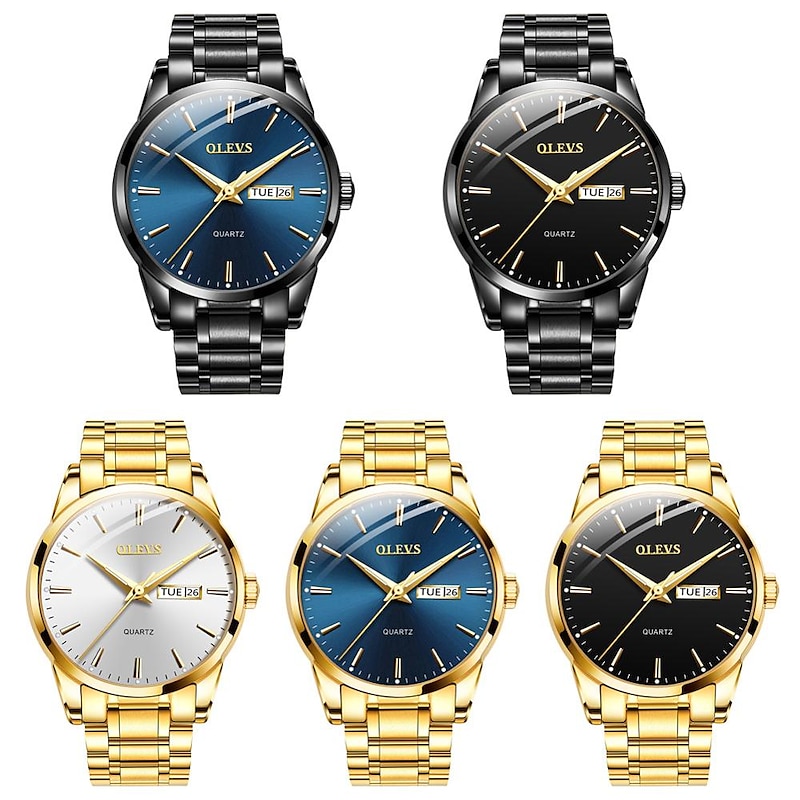 OLEVS Men Quartz Watch Calendar Minimalist Luxury Large Dial Luminous Calendar Date Week Waterproof Stainless Steel Strap Watch 11