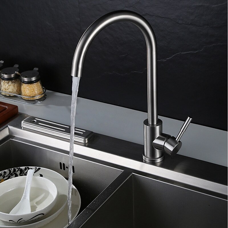 HOT ! Stainless Steel Kitchen Faucet,Nickel Brushed Free Standing Single Handle One Hole Standard Spout High Arc 360° Rotatable Bathroom Sink Faucet with Hot and Cold Water Switch