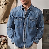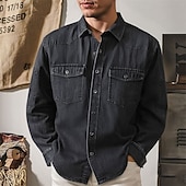 More information about Men's Shirt Summer Shirt Casual Shirt Button Up Shirt Denim Shirt Black Blue Long Sleeve Plain Lapel Vacation Hawaiian Pocket Clothing Apparel Polyester Fashion Casual Comfortable