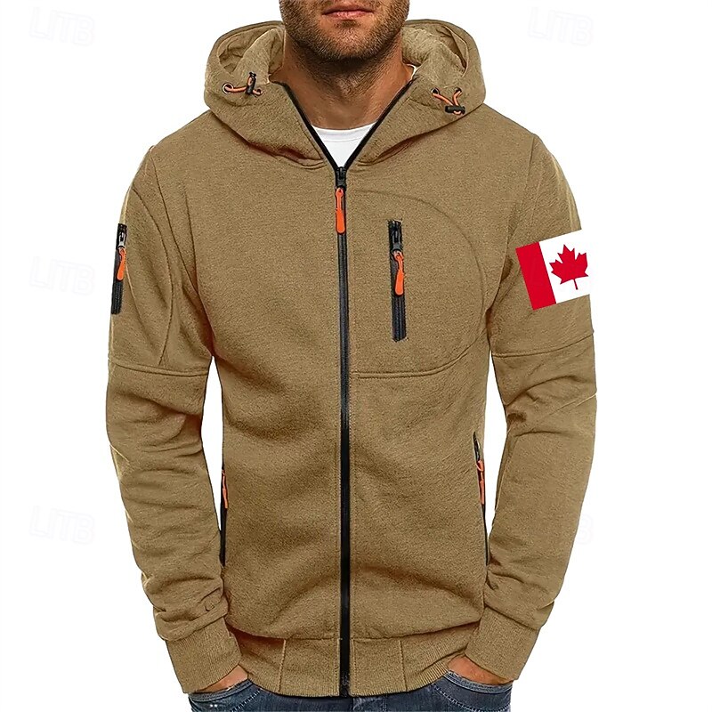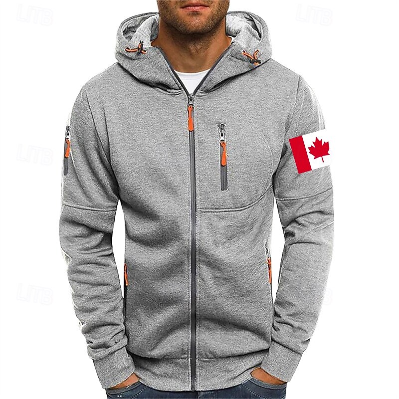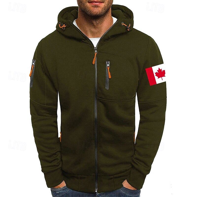 More information about Men's Hoodie Full Zip Hoodie Black White Wine Army Green Navy Blue Hooded National Flag Zipper Pocket Sports & Outdoor Daily Holiday Polyester Streetwear Basic Casual Spring Autumn / Fall Clothing