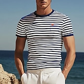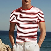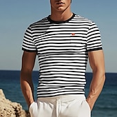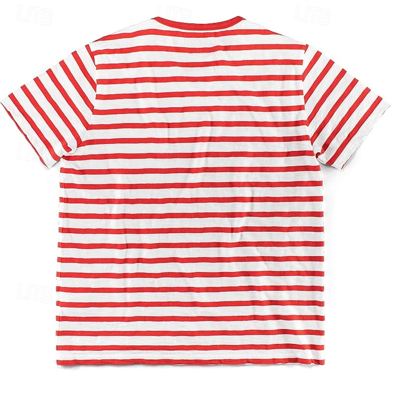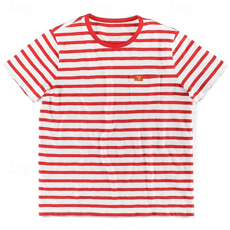 More information about Men's T Shirt Tee Top Short Sleeves Crew Neck Summer Striped Fashion Designer Basic Front Pocket Vacation Street Going out Black Red Light Gray Top Tee for Men