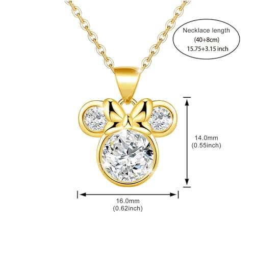 HOT ! Mouse Bow Necklace 18K Gold Plated Sterling Silver Lovely Pendant Necklace for Women Hypoallergenic Cubic Zirconia Adjustable Cute Animal Necklaces for Sister