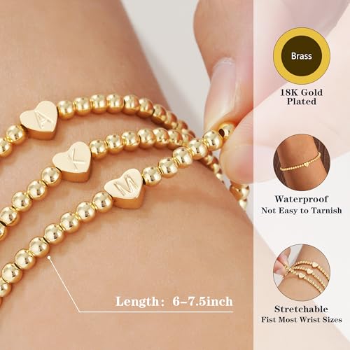 Gold Initial Bracelets for Women Girls Gifts - 18K Gold Plated Heart Initial Bracelet Teen Girl Gifts Trendy Stuff Dainty Beaded Bracelet Gold Bracelets for Women Girls Jewelry 3
