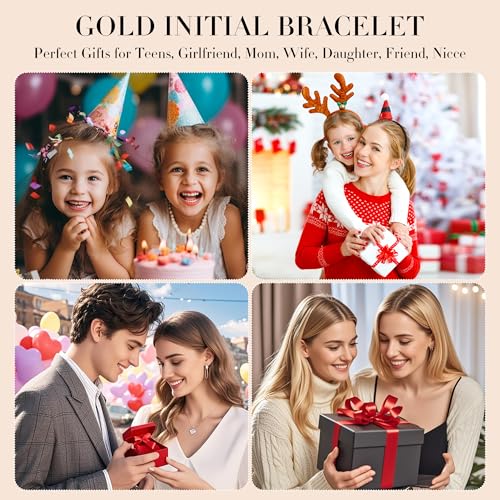 HOT ! Gold Initial Bracelets for Women Girls Gifts - 18K Gold Plated Heart Initial Bracelet Teen Girl Gifts Trendy Stuff Dainty Beaded Bracelet Gold Bracelets for Women Girls Jewelry