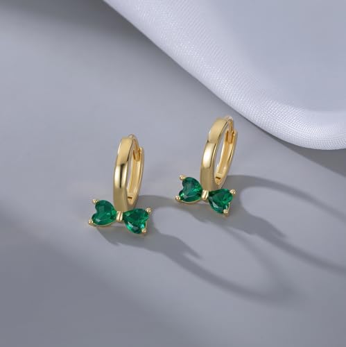 • DESIGN: These earrings are designed in hoops featuring green cz bow. They are so dainty and elegant, great to wear every day or to dress up any outfit.