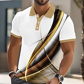 More information about Men's Abstract Line Polo Short Sleeve Polo Shirts Collared Shirts Business Casual Athleisure Buttons Summer Yellow