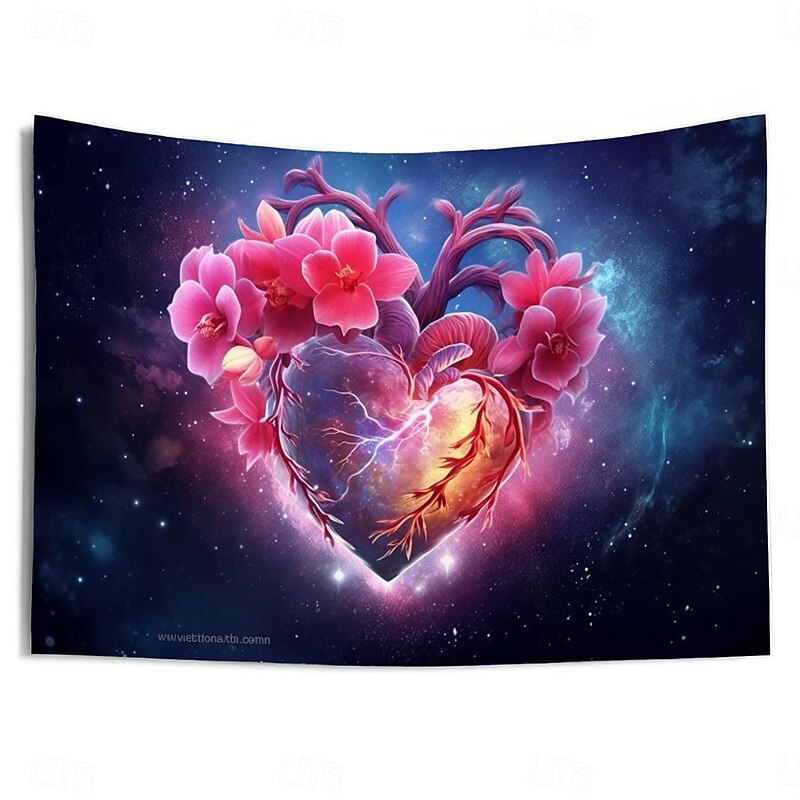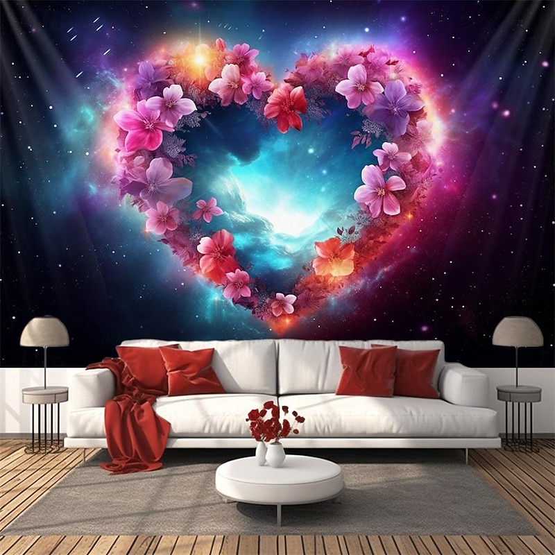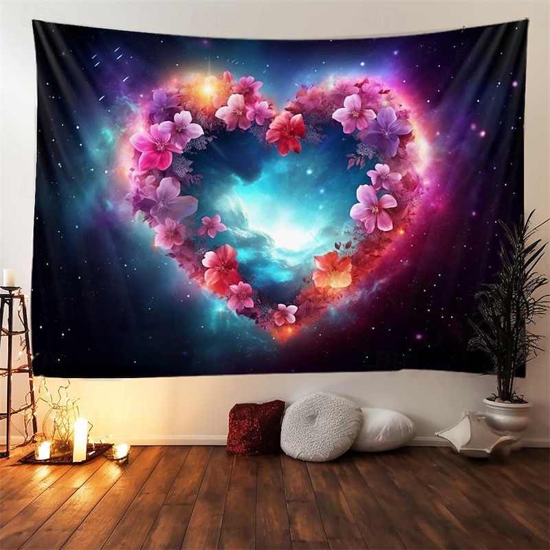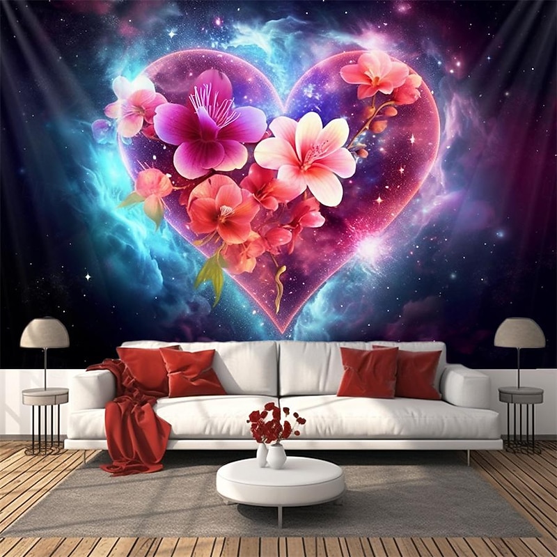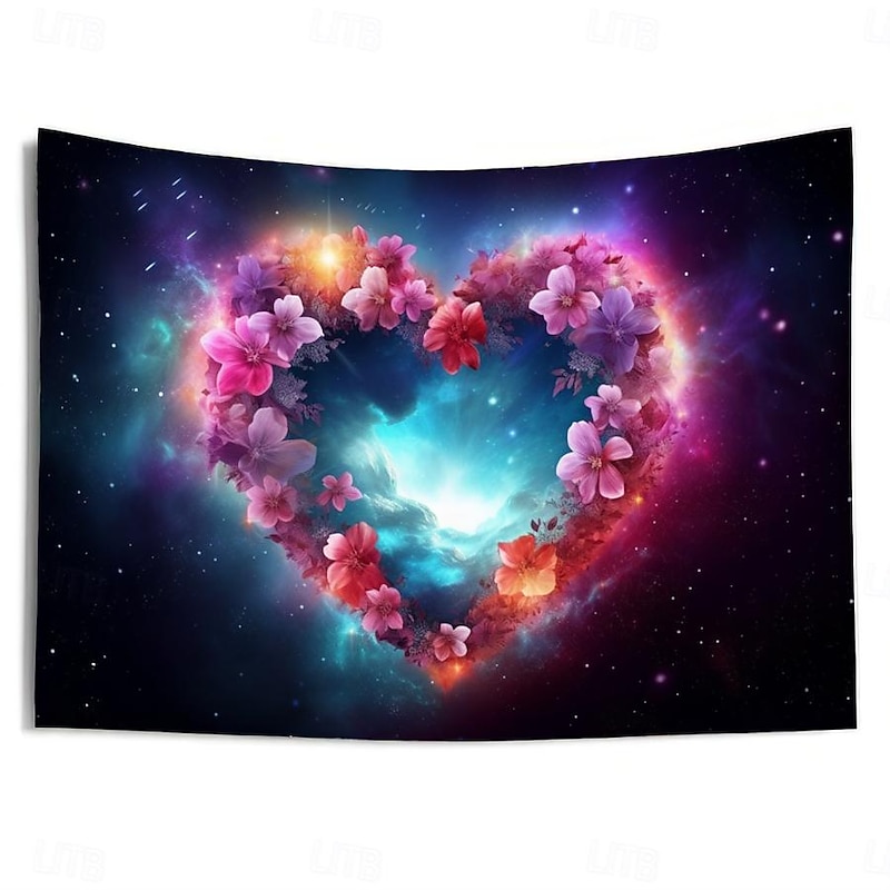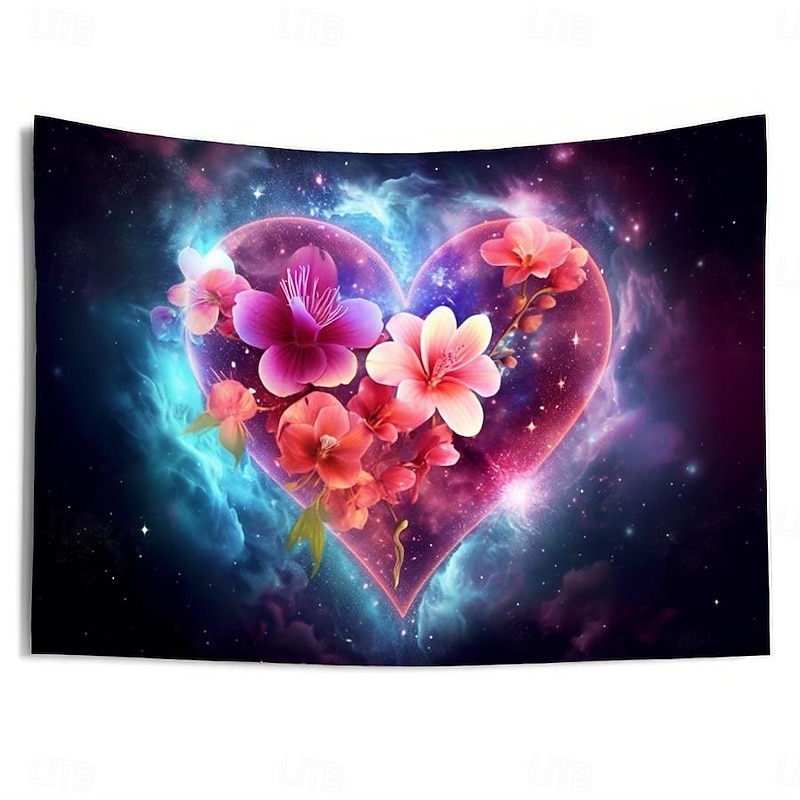 HOT ! Valentine Floral Heart Hanging Tapestry Wall Art Large Tapestry Mural Decor Photograph Backdrop Blanket Curtain Home Bedroom Living Room Decoration