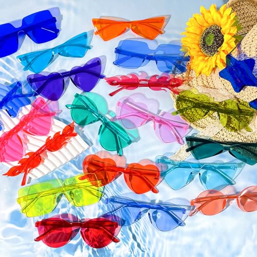 • UNIQUE COMBINATION – These package include 24 different colored rimless glasses, cat eyes, heart, square, round, fire, sufficient styles and quantities to match your daily needs.