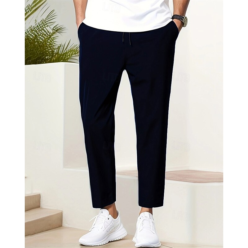 Men's Skinny Trousers Casual Pants Pocket Elastic Waist Drawstring Plain Comfort Ankle-Length Sports Outdoor Daily Fashion Casual Black Navy Blue Micro-elastic 8