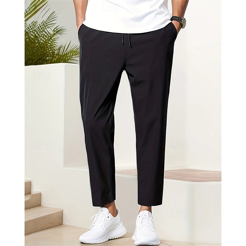 Men's Skinny Trousers Casual Pants Pocket Elastic Waist Drawstring Plain Comfort Ankle-Length Sports Outdoor Daily Fashion Casual Black Navy Blue Micro-elastic 9