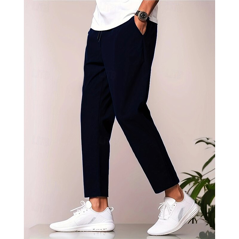 More information about Men's Skinny Trousers Casual Pants Pocket Elastic Waist Drawstring Plain Comfort Ankle-Length Sports Outdoor Daily Fashion Casual Black Navy Blue Micro-elastic