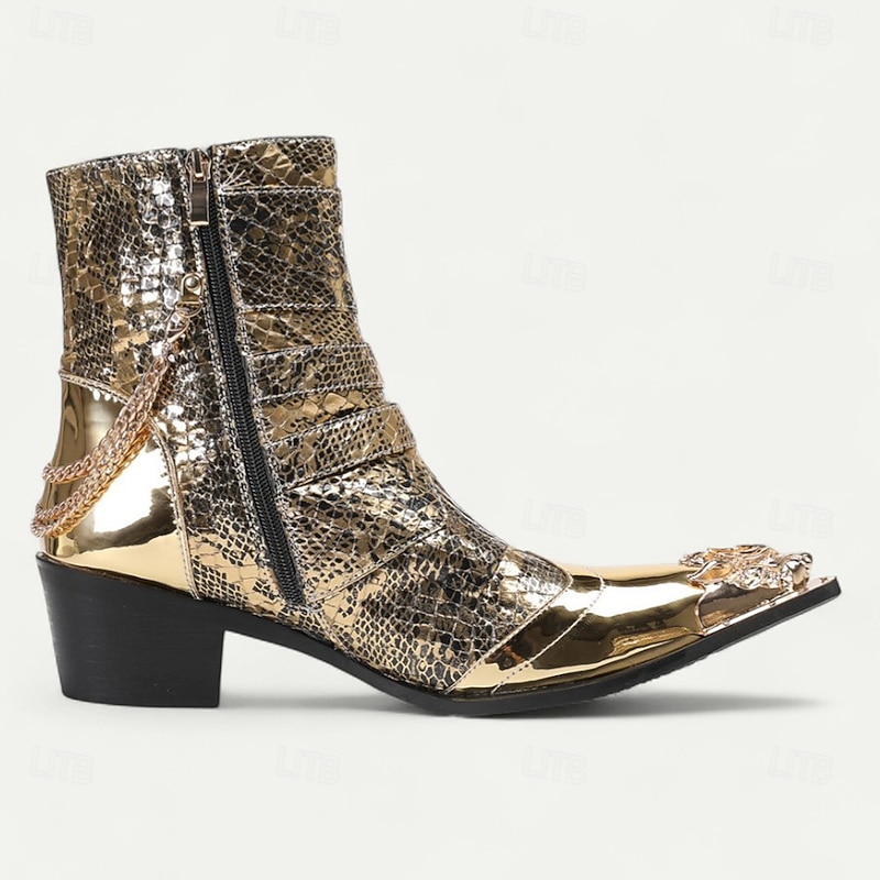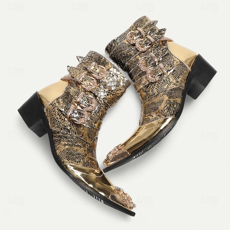 More information about Men's Gold Crocodile-Pattern Ankle Boots – Rocker Style Western Boots with Buckles for Parties, Concerts and Nightlife Fashion