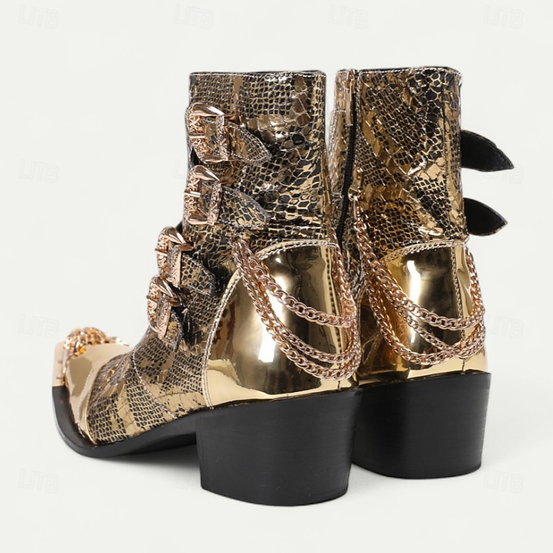 Men's Gold Crocodile-Pattern Ankle Boots – Rocker Style Western Boots with Buckles for Parties, Concerts and Nightlife Fashion 5