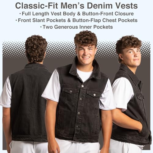 • CLASSIC TRUCKER STYLE – Featuring a button-front closure, spread collar, chest flap pockets, and side welt pockets, this black denim vest combines functionality with timeless jean jacket design.