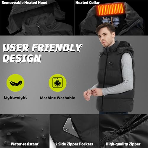 Heated Vest for Men Lightweight - Detachable Heated Hood and 7.4V 16000mAh Battery Pack, Mens Heated Vest 4