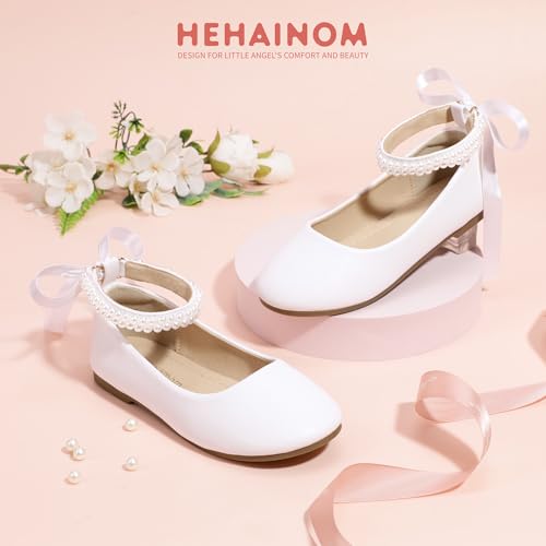 More information about Hehainom Toddler Girls Dress Shoes Flower Girl Little Kids Mary Jane Ballet Flats Pearls Bow Wedding Party Communion Shoes