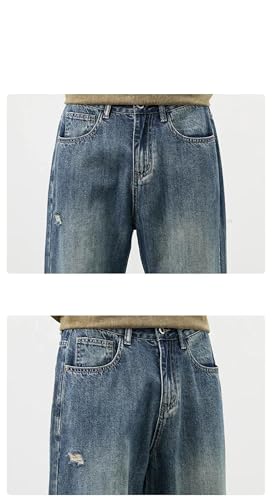 More information about Men's Vintage Cargo Jeans Baggy Straight Denim Pants Distressed Ripped High Street Frayed Trousers