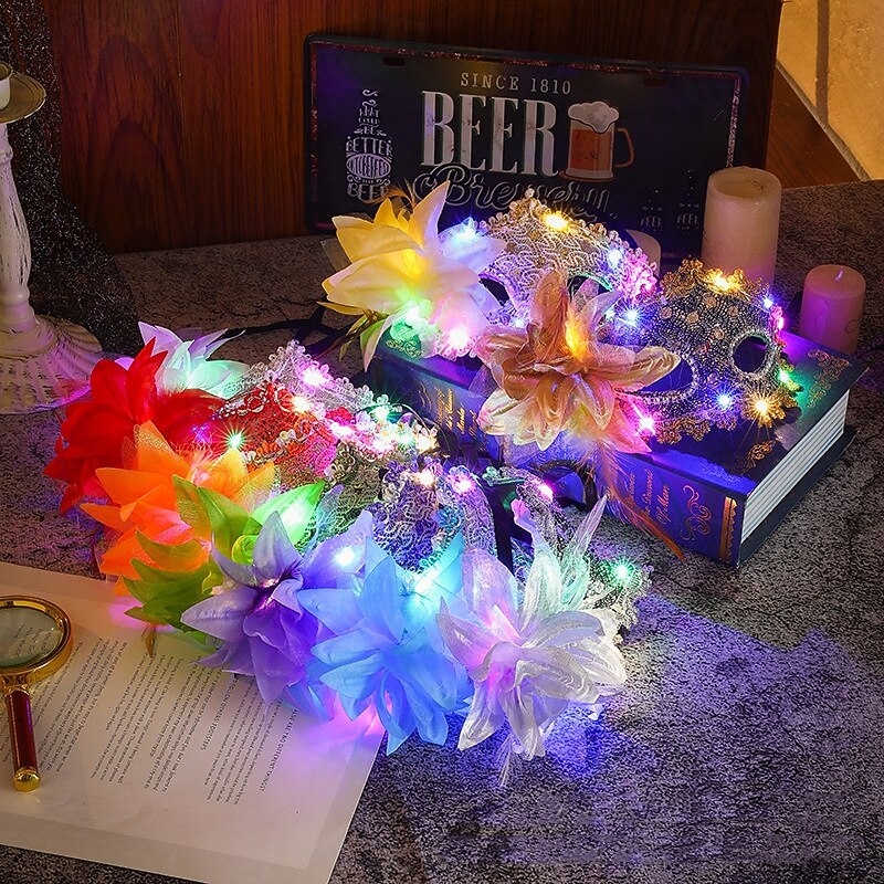 1 Pc 17 * 9CM Halloween Side Flower Princess Luminous Mask New Venice Lily Ball Half Face Mask Halloween Mask 5
