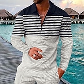 More information about Men's Striped Hawaiian Polo Shirts Golf Shirt Long Sleeve Polo Shirts Collared Shirts Casual Beach Wear Vacation Wear Party Outfits 3D Print Quarter Zip Polo Black Red Navy Blue