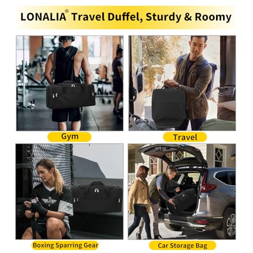 • DURABLE MATERIAL: This sport duffel bag men is made from thick & tear-resistant polyester material with reinforced stitching, ensuring long-lasting durability. It also featured high-quality hardware and smooth lockable zippers.