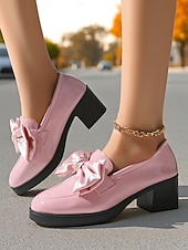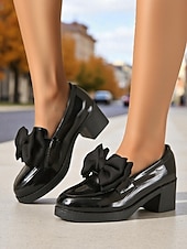 More information about Women's Patent Faux Leather Chunky Heel Loafers with Oversized Bow – Retro Style Dress Shoes for Outdoor Casual Activities and Daily Streetwear