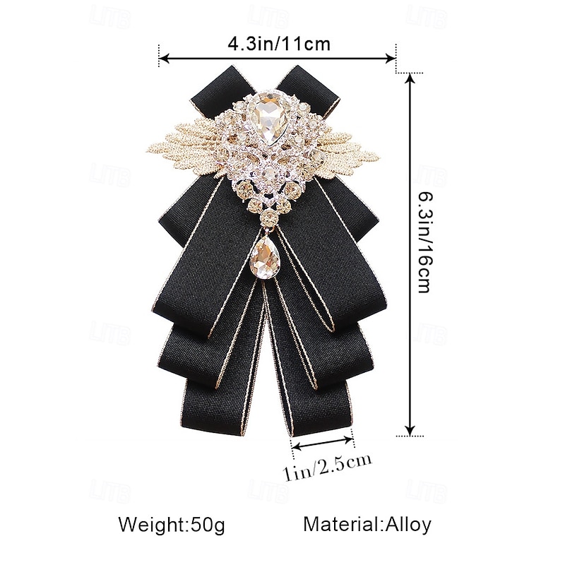 Men's Luxury Crystal Brooch Bow Tie - Elegant Ribbon Pin with Rhinestone Decoration, Formal Wedding and Party Accessories 11