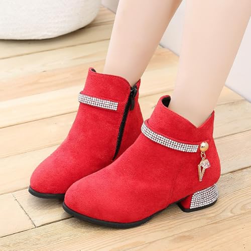 IWIHMIV Toddler Girl Ankle Boots Low Heels Fall Booties Pointed Toe Side Zipper Riding Shoes Dress Short Boots 4