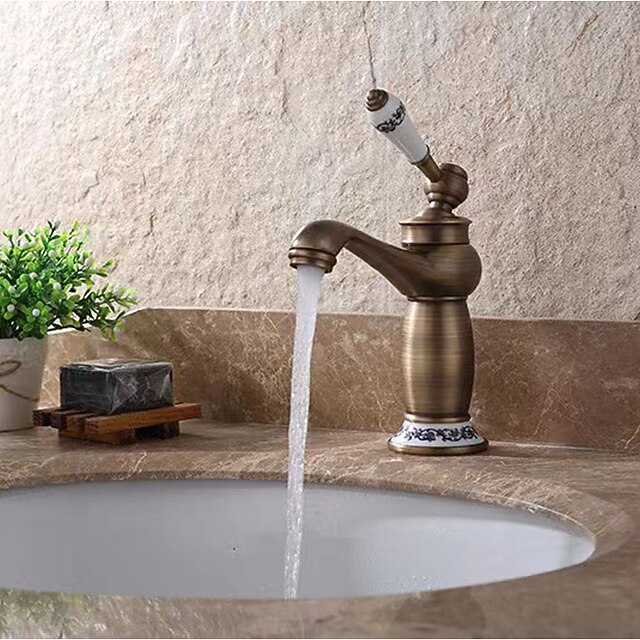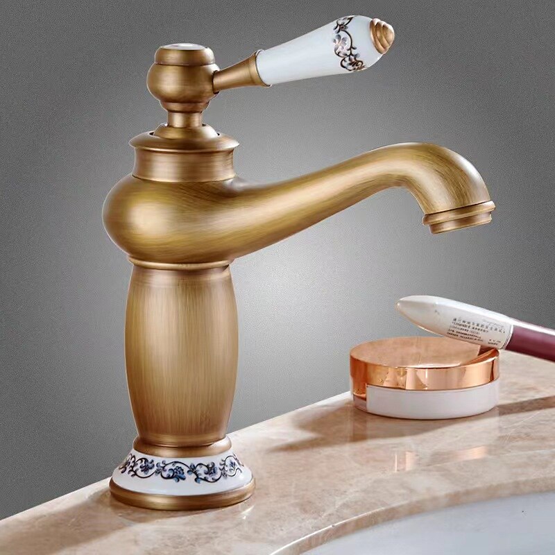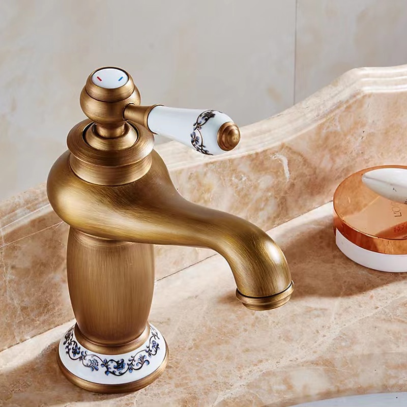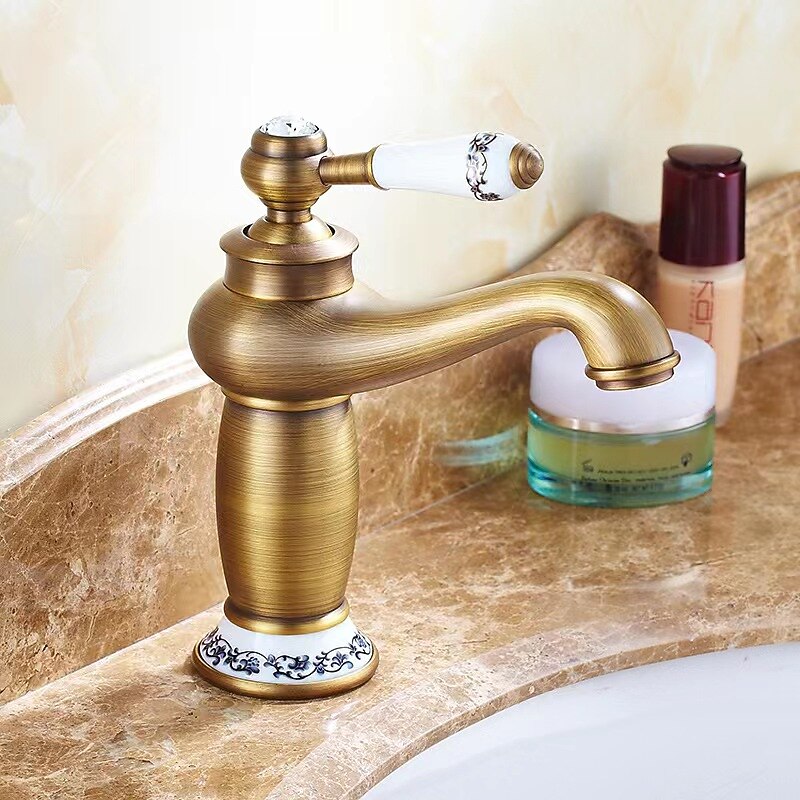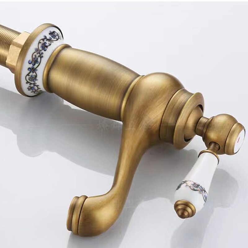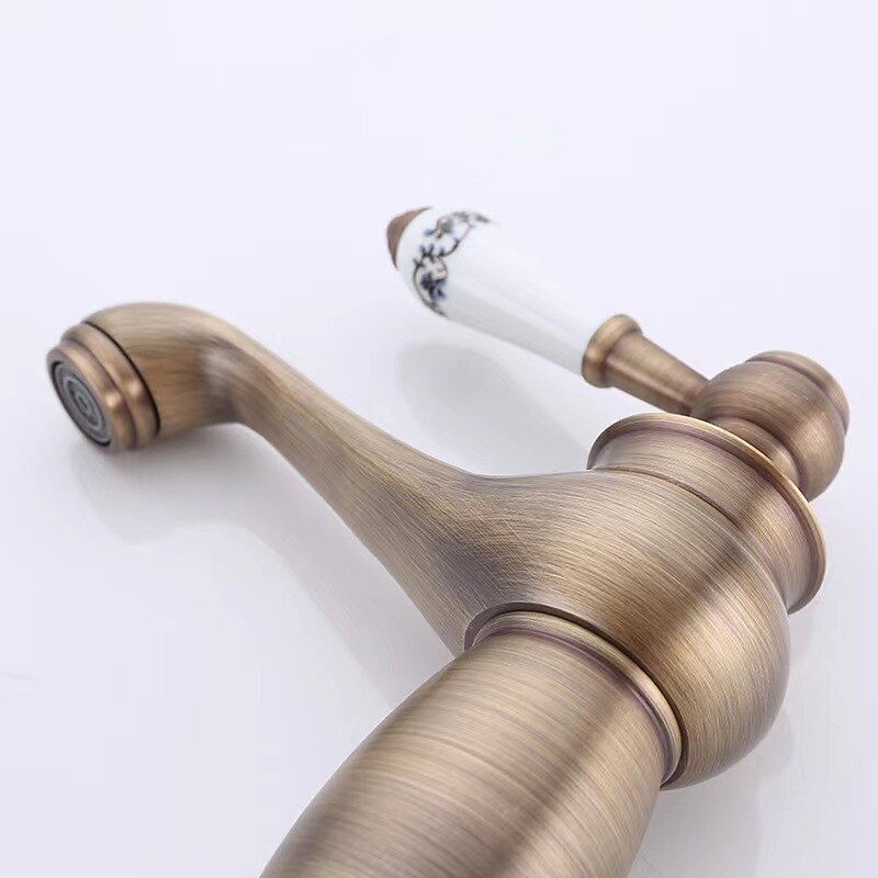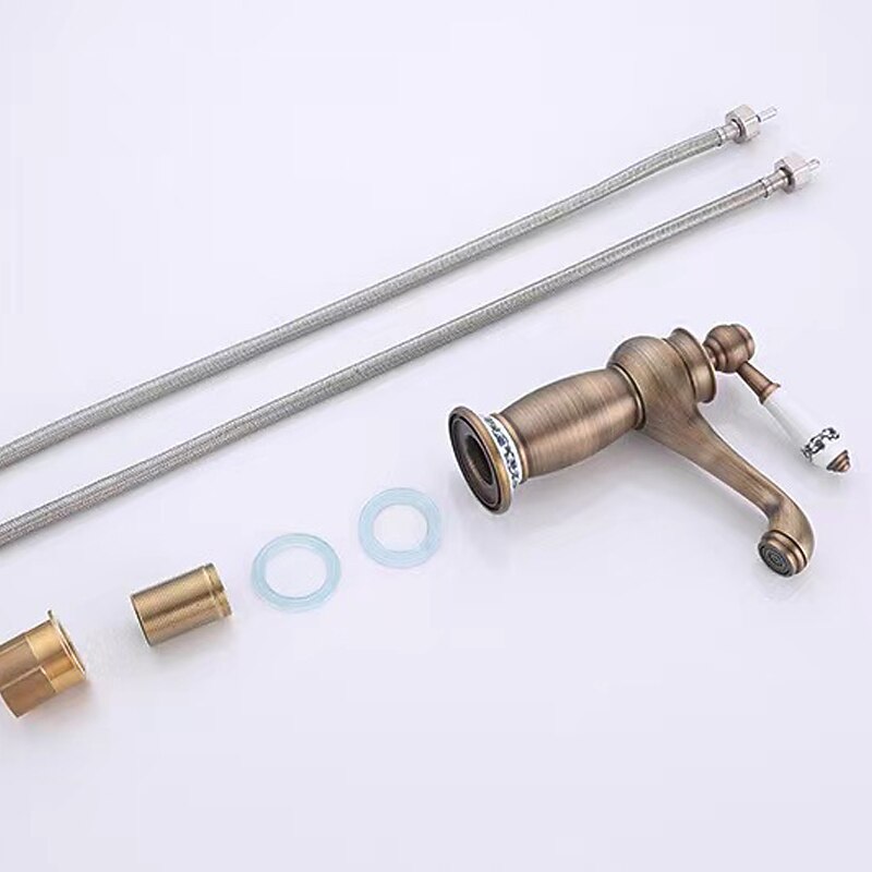 More information about Vintage Bathroom Sink Mixer Faucet, Monobloc Washroom Basin Taps Single Handle One Hole Deck Mounted, Mono Retro Style Water Taps Hot and Cold Hose