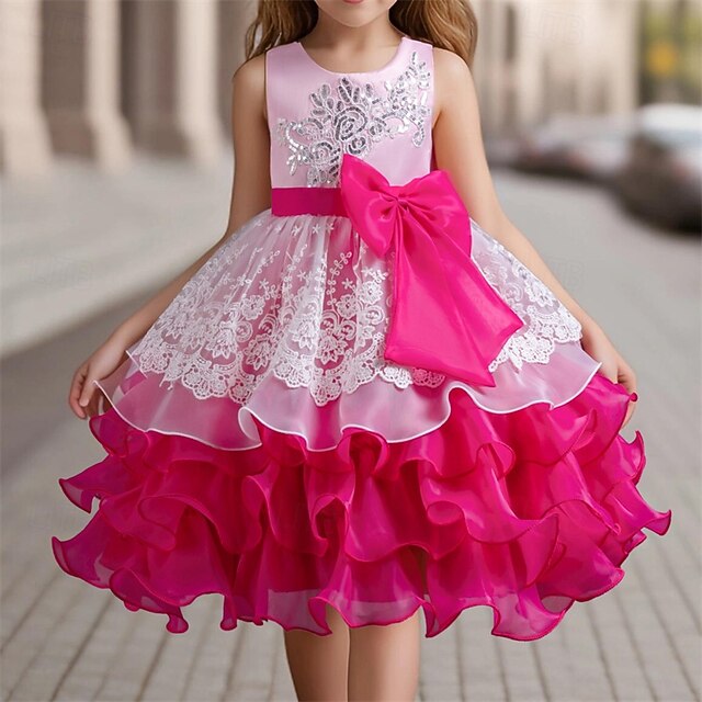 Kids Girls' Cosplay Dress Party Dress Color Block Sleeveless Performance Christmas Mesh Backless Patchwork Beautiful Sweet Polyester Maxi Party Dress Swing Dress Tulle Dress Winter 4-12 Years Red 7