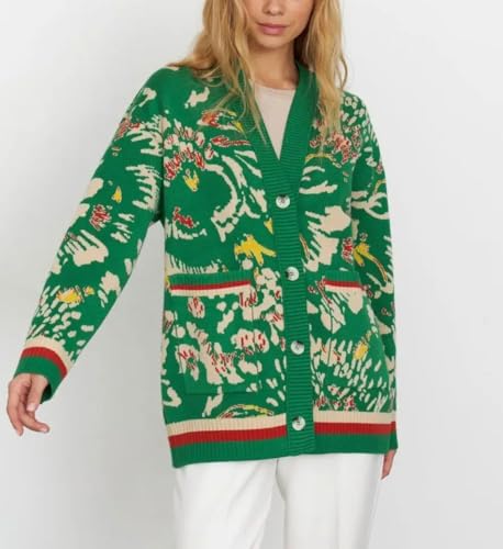 • Elegant cardigan sweaters for women patterned, featuring cute floral printed pattern design, classy striped splicing detail, its western and vintage style can create a contrast color visual vibe, make you look charming and eye-catchy.