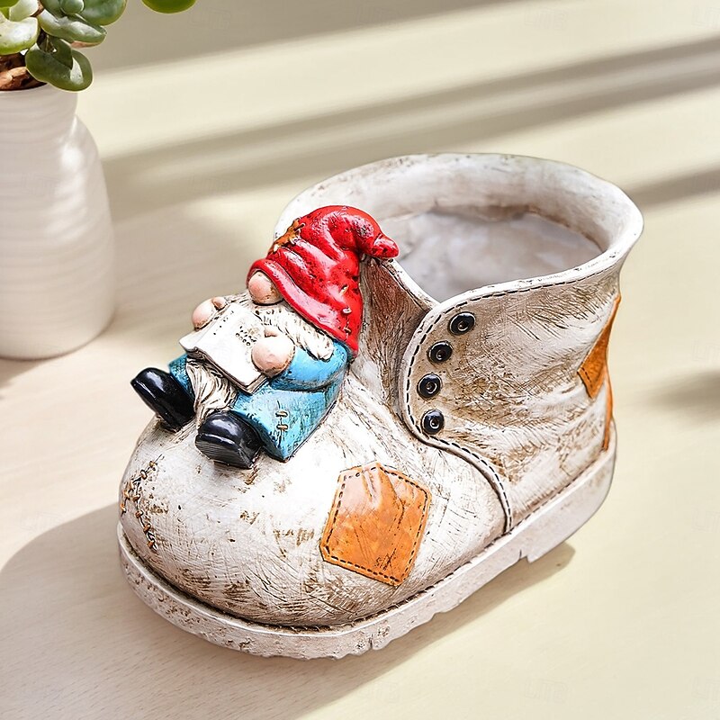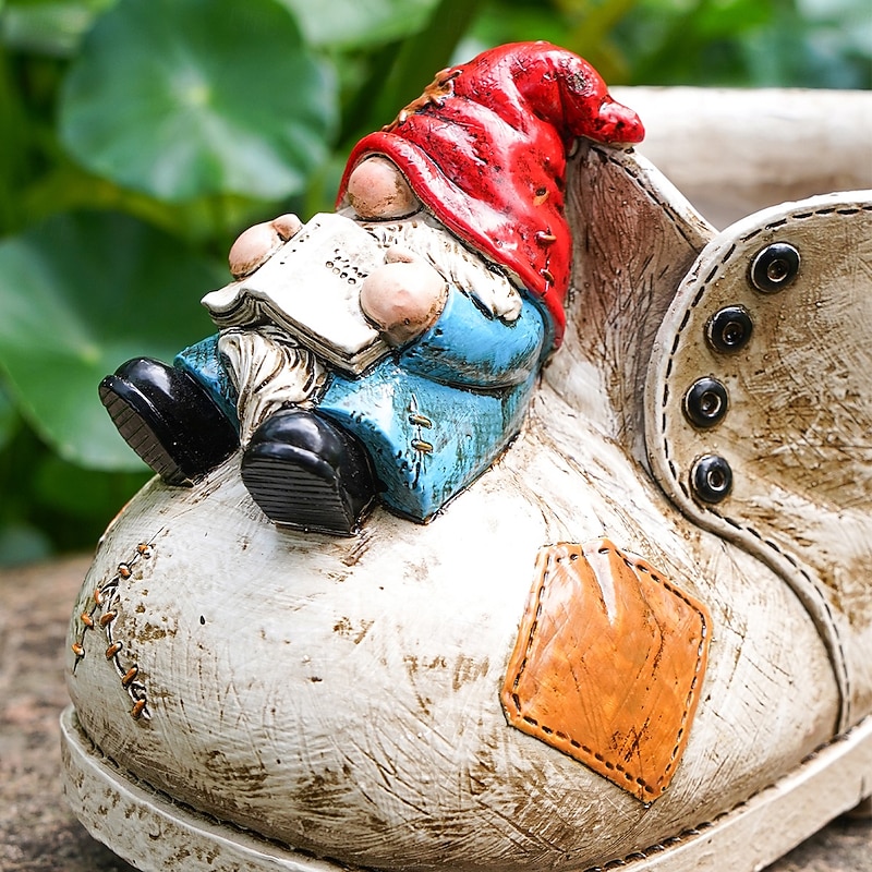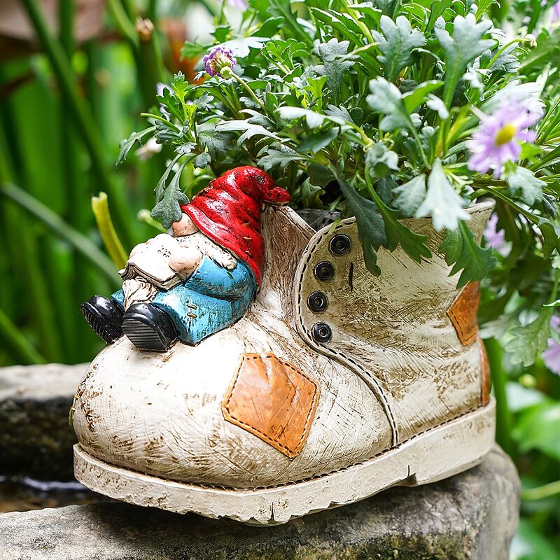 Boot-Shaped Gnome Succulent Planter – Colorful Hand-Painted Resin Flower Pot for Garden Décor, Patio Ornament & Mini Plant Growing 7