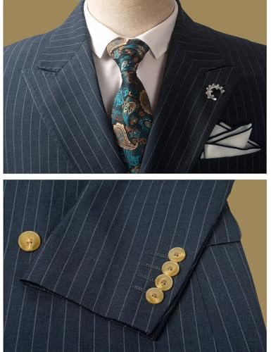 More information about Men's Double Breasted Blazer Jacket Slim Fit Peak Lapel Stripes Casual Sport Coat for Business Wedding